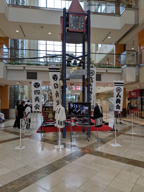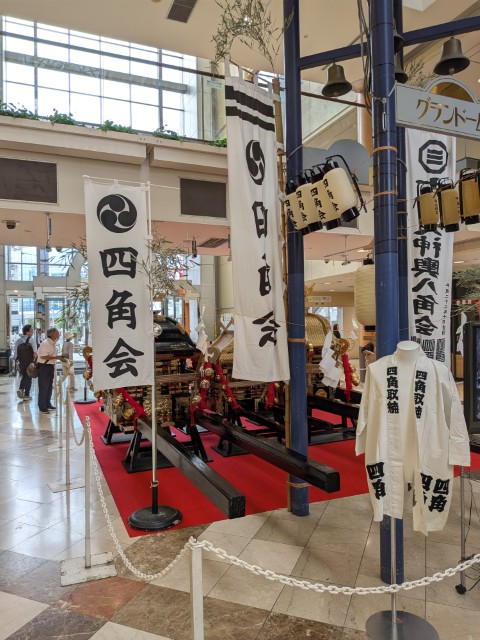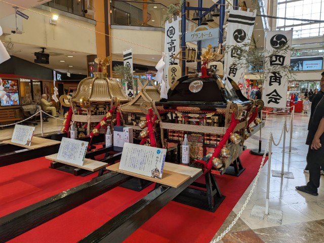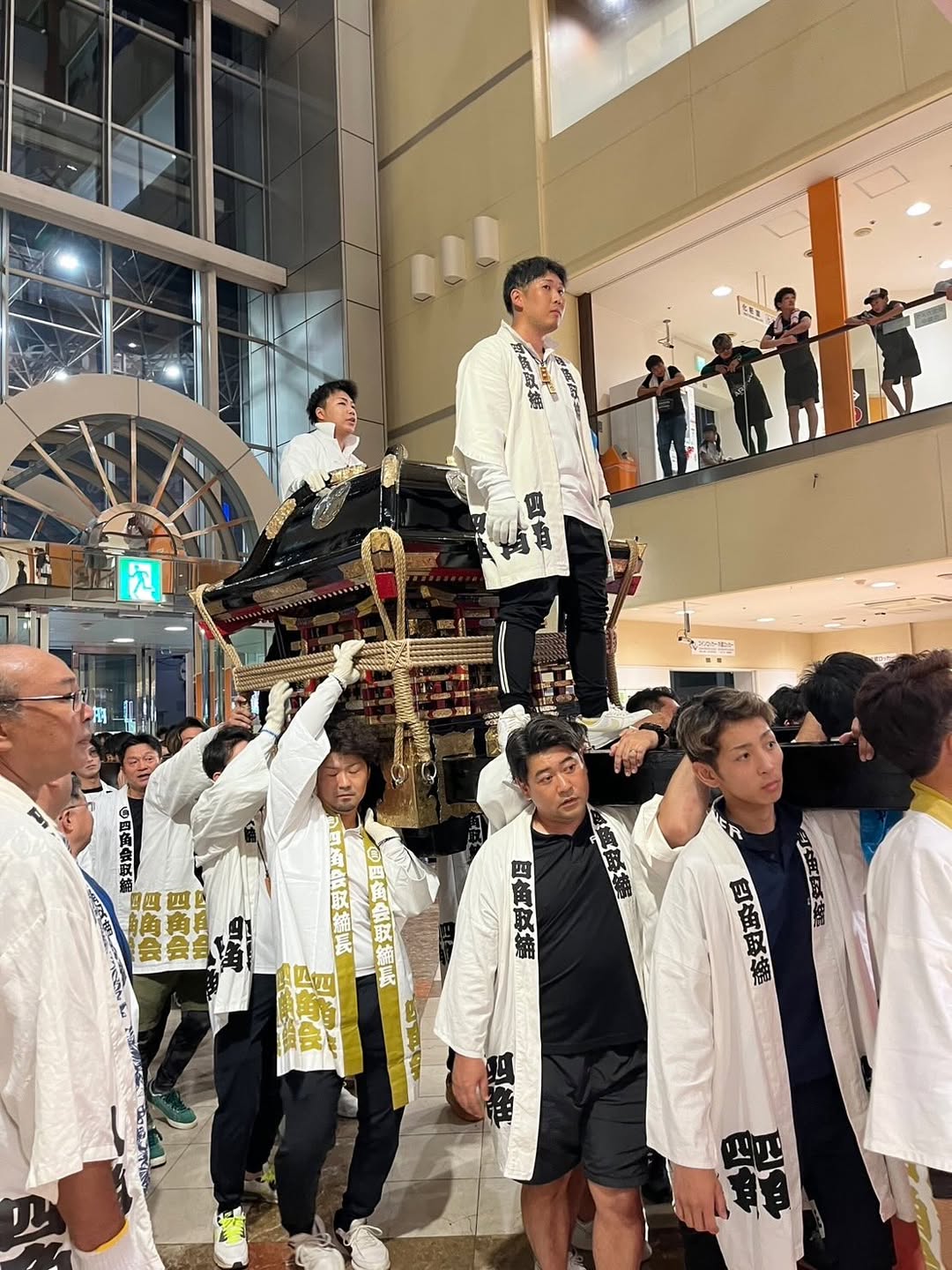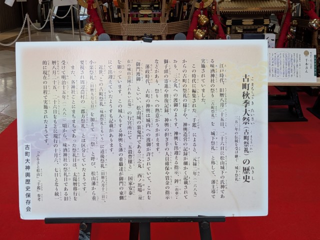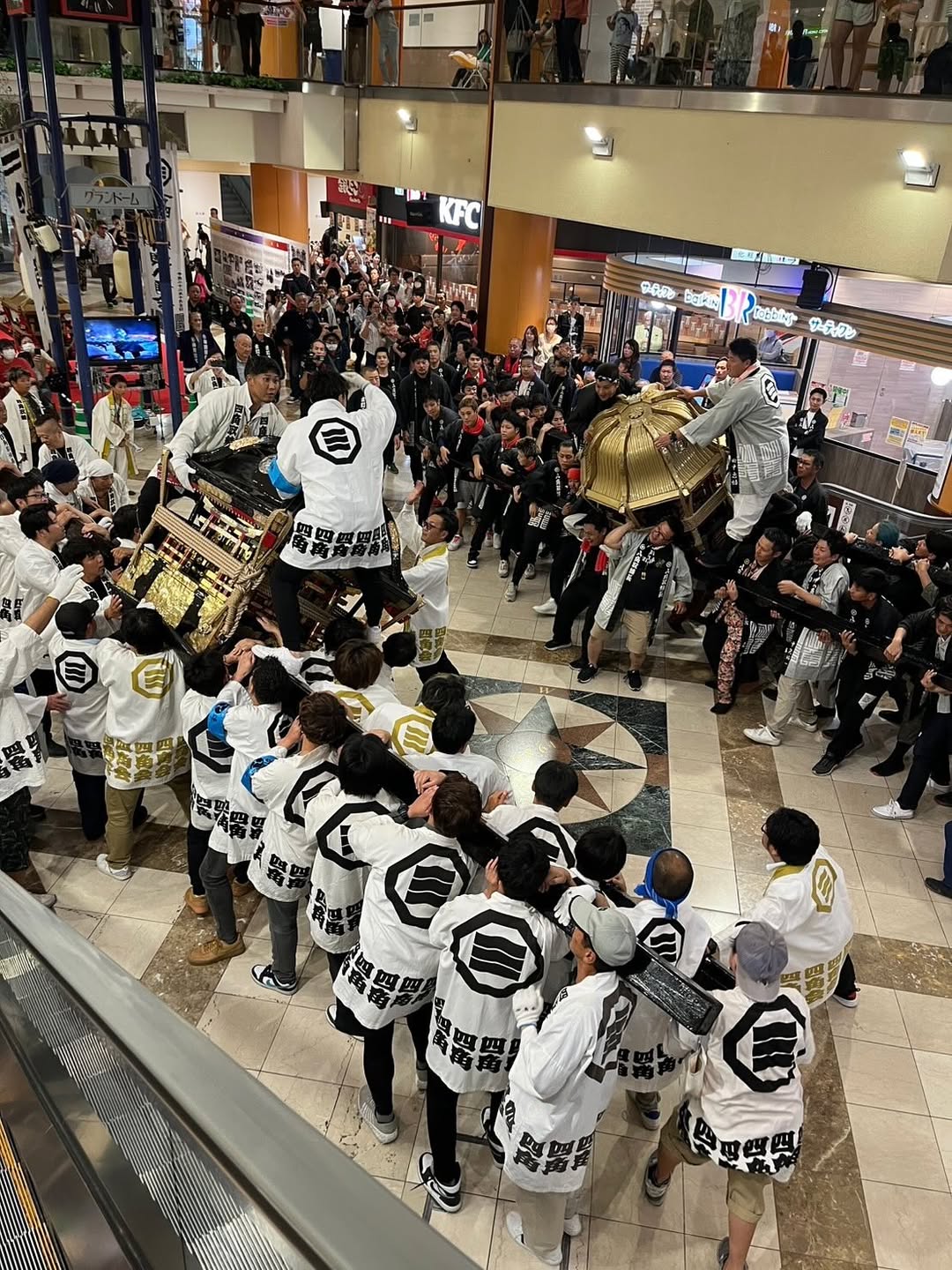 活動報告 2025年9月24日 フジグラン松山に神輿搬入・展示の様子 2025年9月26日 フジグラン松山での展示の様子 古町大神輿(千木神輿・八角神輿・四角神輿)の主な活動場所 大三島神社(愛媛県松山市萱町4丁目)・・・10月5日神事、10月7日本祭り宮出し・宮入り 城山公園 ふれあい広場・・・10月6日ロープ巻き、10月7日本祭り 神輿鉢合わせ